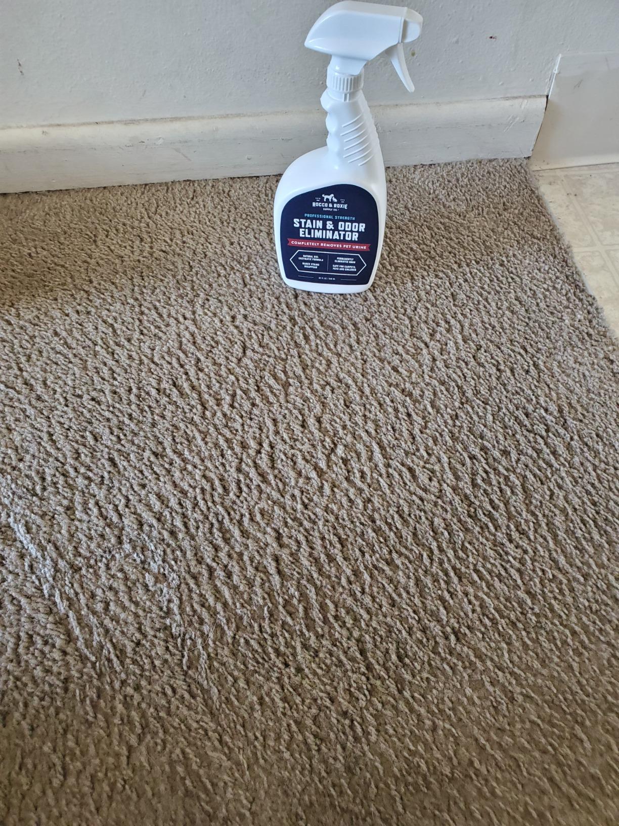 "I honestly have no idea how we managed without this product before. We’ve tried most everything- from carpet cleaners to products that just cover scent. Nothing truly worked or lasted to get the cat urine Odor out of our carpets. A few years ago, my fiancé ripped out our carpets all downstairs (the carpets were old & no good anyway!) in large part due to Odor but we still have them upstairs. We foster kittens sometimes so there’s a bit of stress with residents cats sometimes- & we have been watching my boss’s cat while they move so there is just a feline soap opera in our home. Needless to say, spite peeing has become a thing. We were at our wit’s end when it began to happen in our own room- one corner of the room (on my side of the bed- lucky me!) has nearly unbearable. We didn’t even want to enter our own room. I purchased this product as a hail-Mary, hoping the positive reviews were true. THEY ALL UNDERSTATED THIS PRODUCT!! My fiancé followed the instructions down to the T & the smell is COMPLETELY GONE. Not even the slightest hint of urine anymore. I admit, I’m more of a “citrus/floral” girl for smells so this more minty scent isn’t “my style,” but the fragrance doesn’t linger too long. But what remains is a completely neutralized smell. In addition, the carpet seems generally cleaner. I am so grateful to this product." -Amazon Customer-